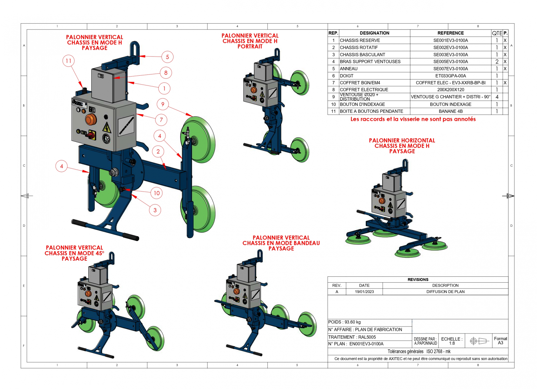 De nombreux clients nous confient la réalisation de leurs équipements de manutention qui tiennent compte de votre hauteur, largeur, longueur, réglable, poids (de quelques kilos à plusieurs tonnes), réglable ou pas, accessoires, crochet de pont ou de grue, voici les produits que nous pouvons vous proposer : palonniers sur mesure réglable, palonnier mono-poutre réglable en acier, palonniers multi-poutres en acier réglable sur mesure, palonnier pour prédalle en acier, palonnier rotatif motorisé, panier de levage en acier (avec rampe, fourreaux pour votre engin de levage) sur mesure ou panier de levage standard, Cé de levage, écarteur de levage sur mesure et standard, palonnier big bag, palonnier big bag pour chariot élévateur, palonnier potence pour manuscope, potence de levage, portique de levage, monorail, système de levage réglable, accessoires de levage, nous avons plusieurs produits (élingues chaînes, élingues câbles, élingues textiles, crochets tournants avec linguet de sécurité, crochet automatique, manille lyre, manille droite), pince de levage, palan, chariot porte palan, palan avec chariot, platine de levage, chape de levage, pieds d'éléphant, agrès de levage spécifique.