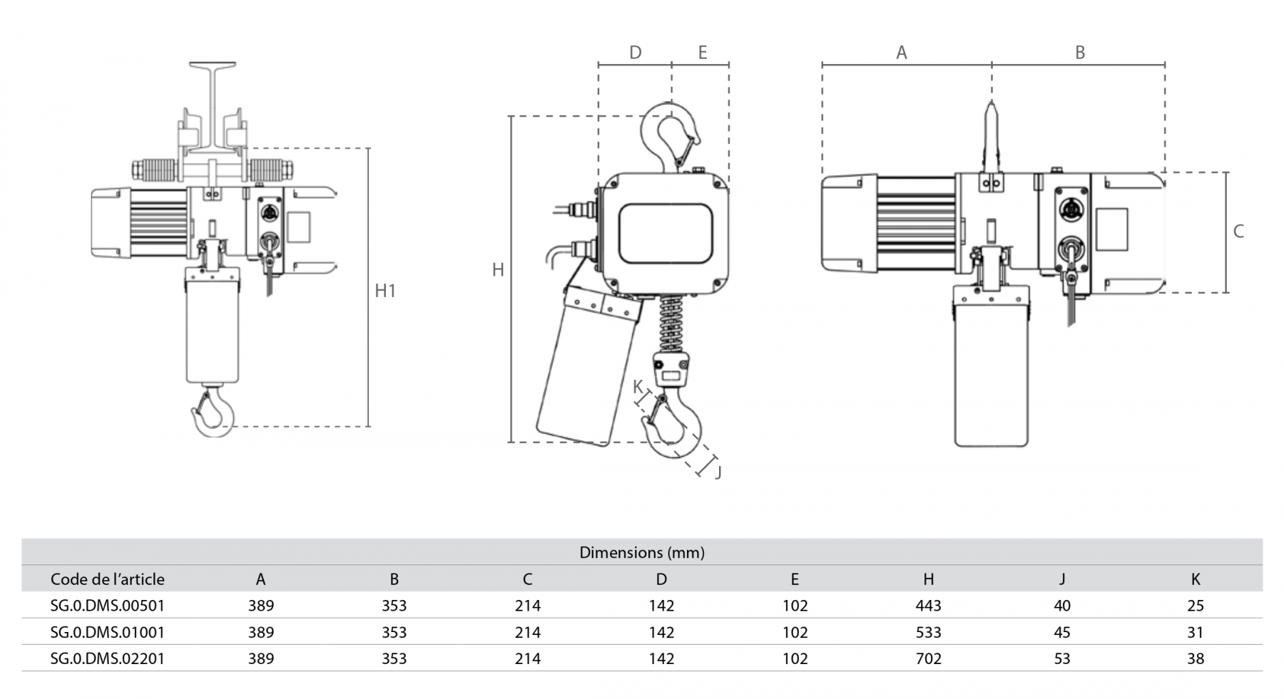 Palan à chaîne électrique Delta SG.DMS composé de :
