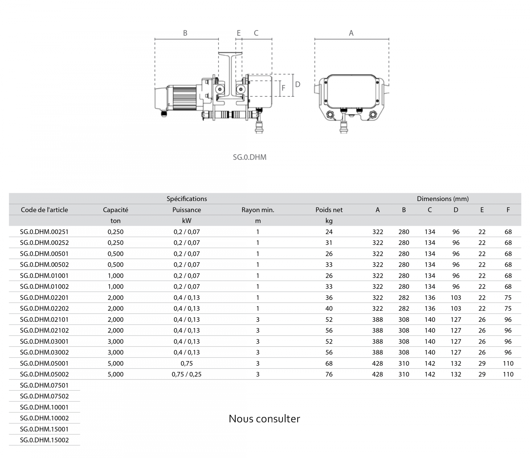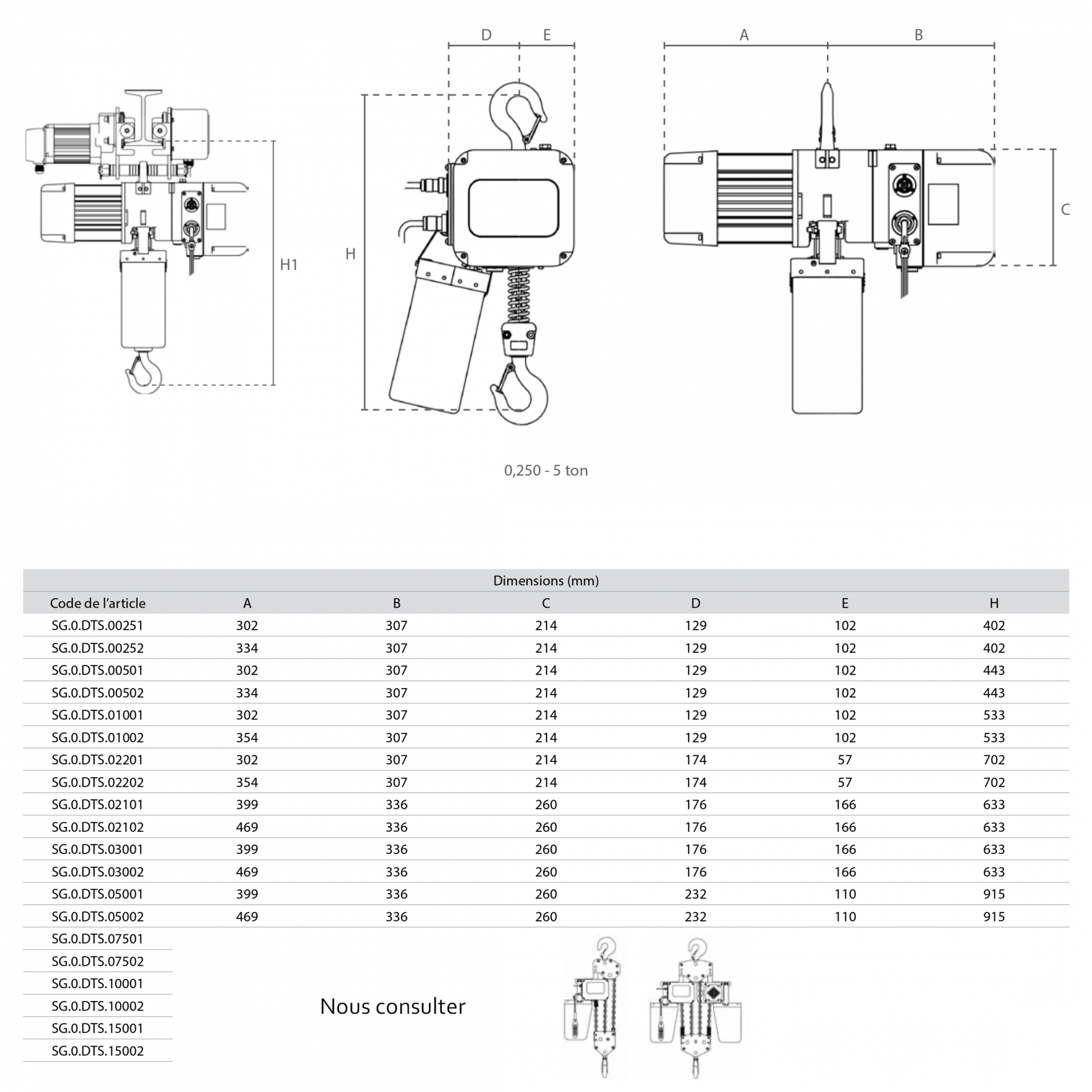 Avantages et inconvénients : plus grand, plus encombrant mais moins cher que le Palan à chaîne électrique 400V Delta DH.DEH.