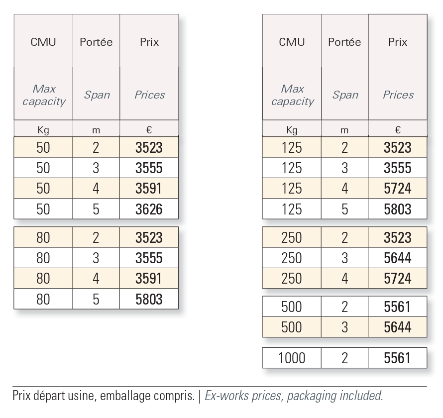 - La structure de cette potence est adaptée à l'installation optionnelle d'un palan électrique ou manuel,