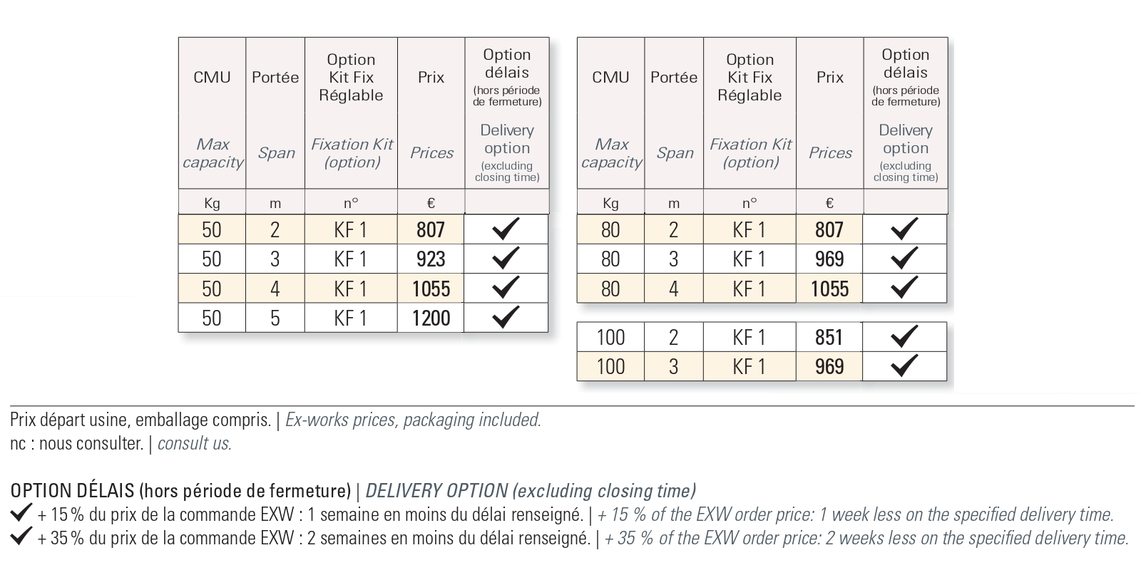 À votre demande et en option, nous pouvons faire contrôler le matériel de levage par des organismes de contrôle agréés tels que la SOCOTEC.