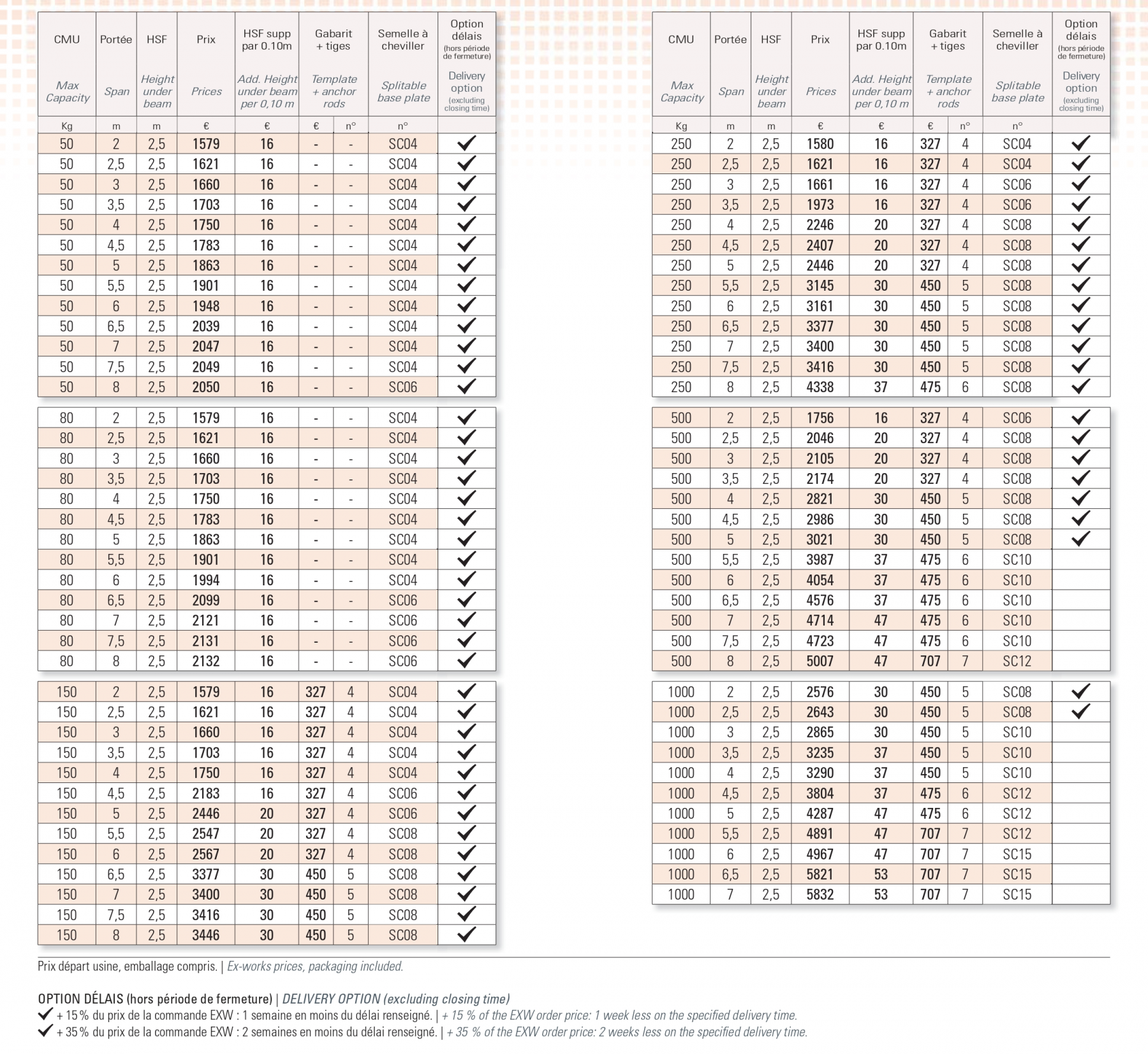 À votre demande et en option, nous pouvons faire contrôler le matériel de levage par des organismes de contrôle agréés tels que la SOCOTEC.