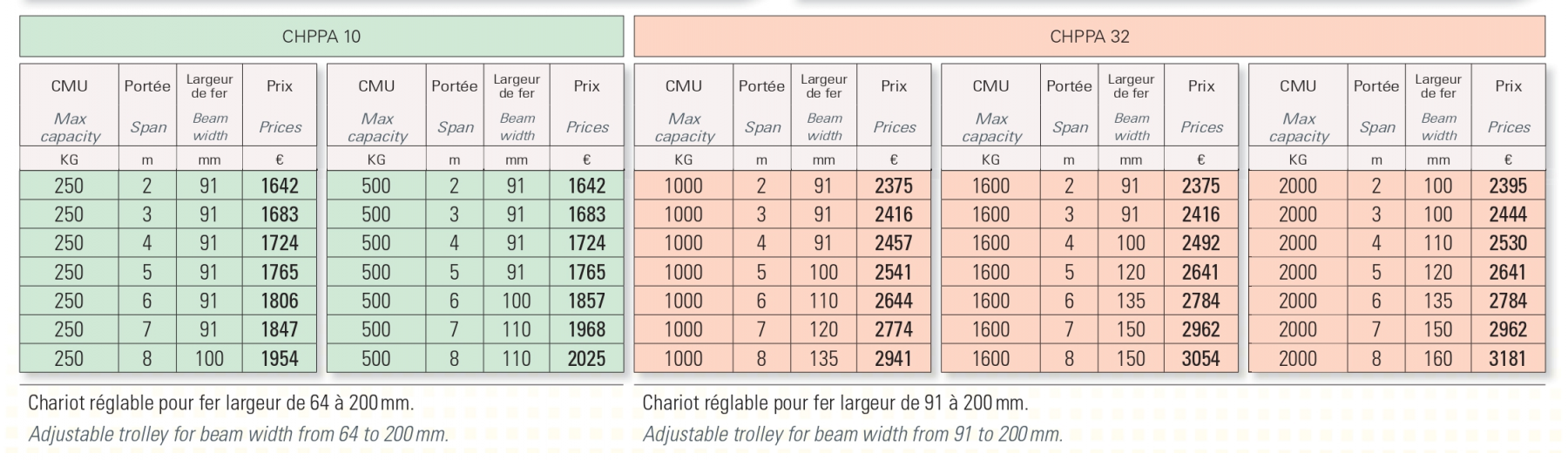 - 1 paire de chariots manuels + poutre