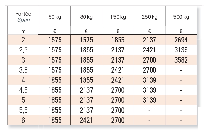 Nos matériels de levage sont calculés au minimum à 2 fois la charge maximale d'utilisation.